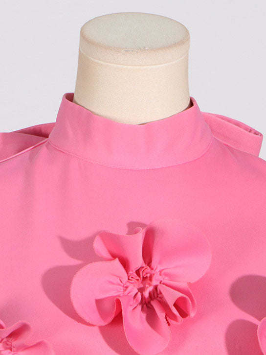 A stunning maxi dress with floral embellishments, a high neckline, and a sleek silhouette, perfect for making a statement at any event.